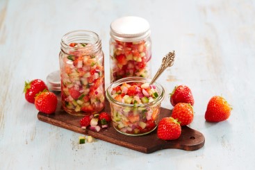 Jordbærsalsa med agurk og rødløk
