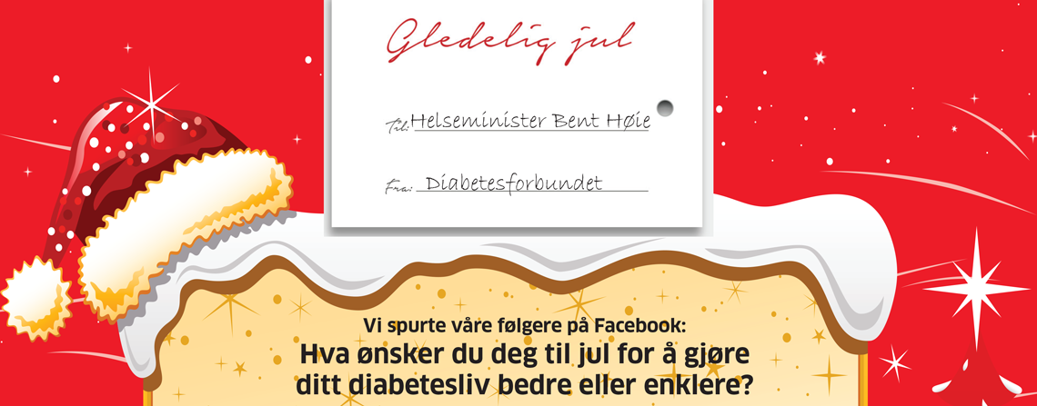 På julekortet står noen av ønskene fra alle våre følgere på Facebook. Vi fikk inn 463 ønsker på 48 timer, ikke bare fra de som har diabetes, men fra foreldre, søsken, venner og helsepersonell. Det var mange rørende historier om hvordan det er å leve med diabetes, både som pårørende og for den som har det.