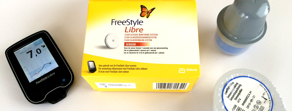 FreeStyle Libre ble introdusert i Norge for to år siden. Med den lille sensoren som festes på overarmen med teip, kan man enkelt lese av blodsukkeret (eller glukosenivået, for å være helt presis) med en liten avleser. Sensoren og avleseren forteller også om trenden til blodsukkeret – om det er stabilt eller på vei opp eller ned.