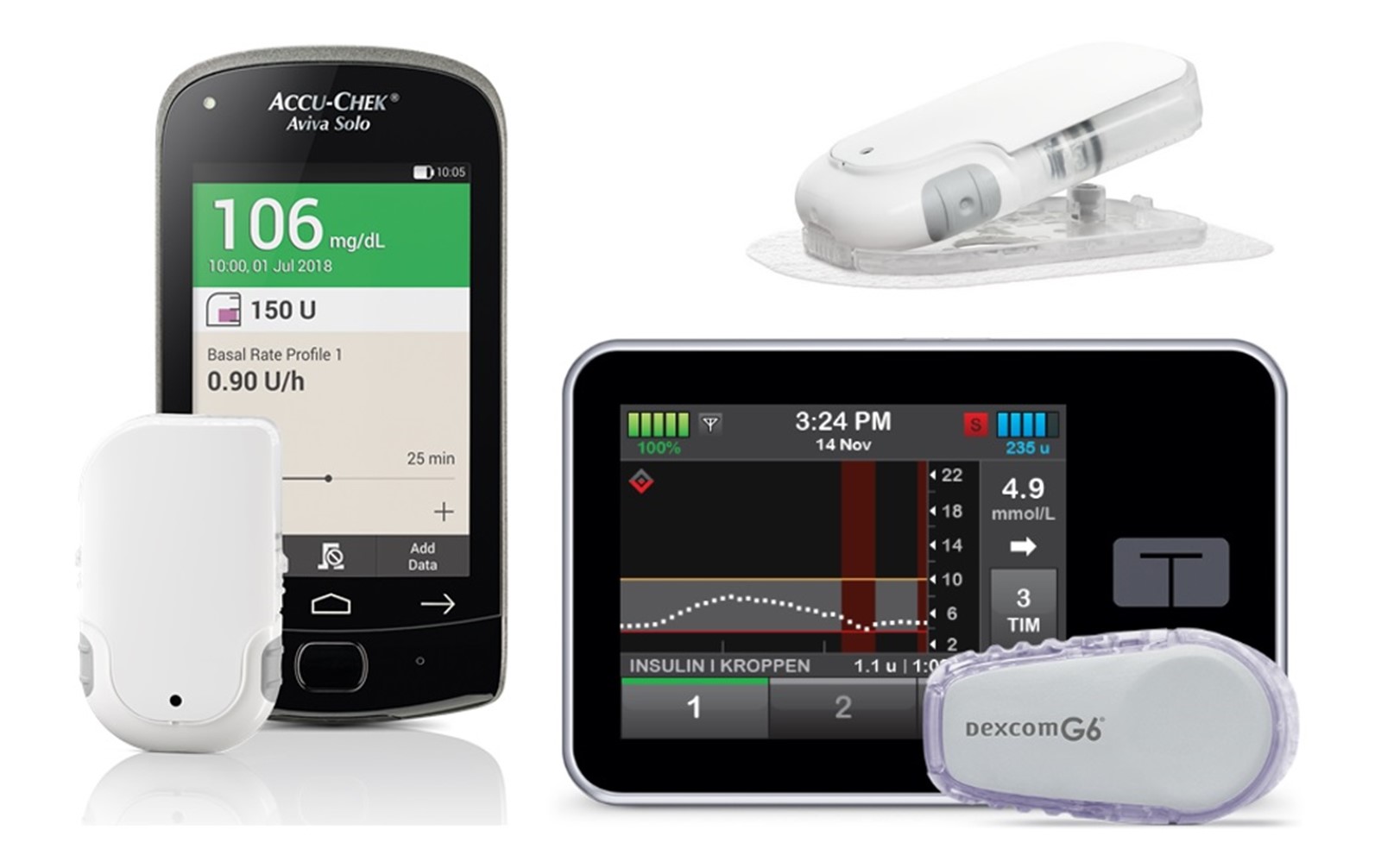 Innenfor insulinpumpesegmentet var det noen få nyheter, blant annet en ny slangeløs patchpumpe fra Roche og en oppgradering av Tandem T:slim pumpen.