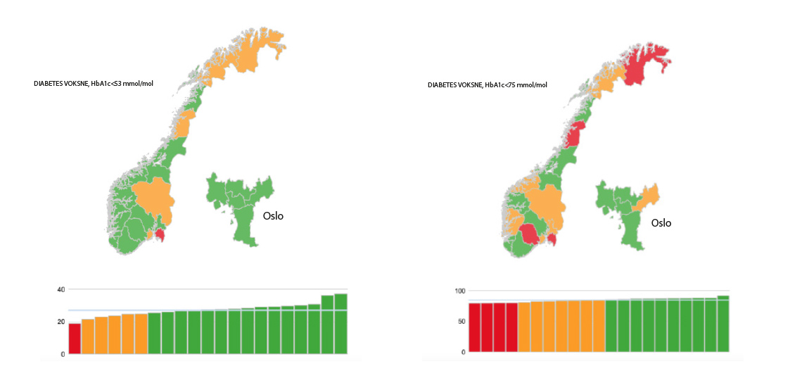 Helseatlaset for kvalitet ble lansert i januar 2021. Atlaset sammenstiller data fra tolv ulike registre for å vise kvalitet i utredning og behandling for utvalgte pasientgrupper med alvorlig sykdom. Diabetes er ett av fagområdene. Tallene gjelder perioden 2017–2019 (se faktaboks).