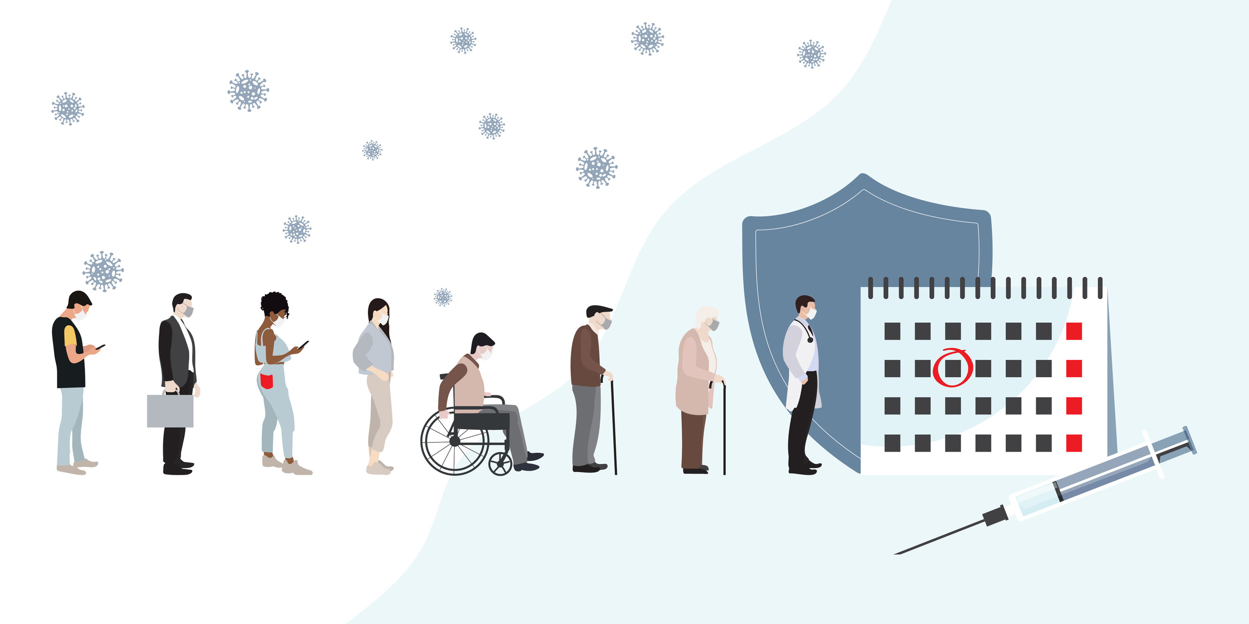 - Registrer deg i vaksinekø dersom dette er noe din kommune krever. Dette er for å være sikker på å bli innkalt når turen er kommet til deg. Registrering gjøres elektronisk.